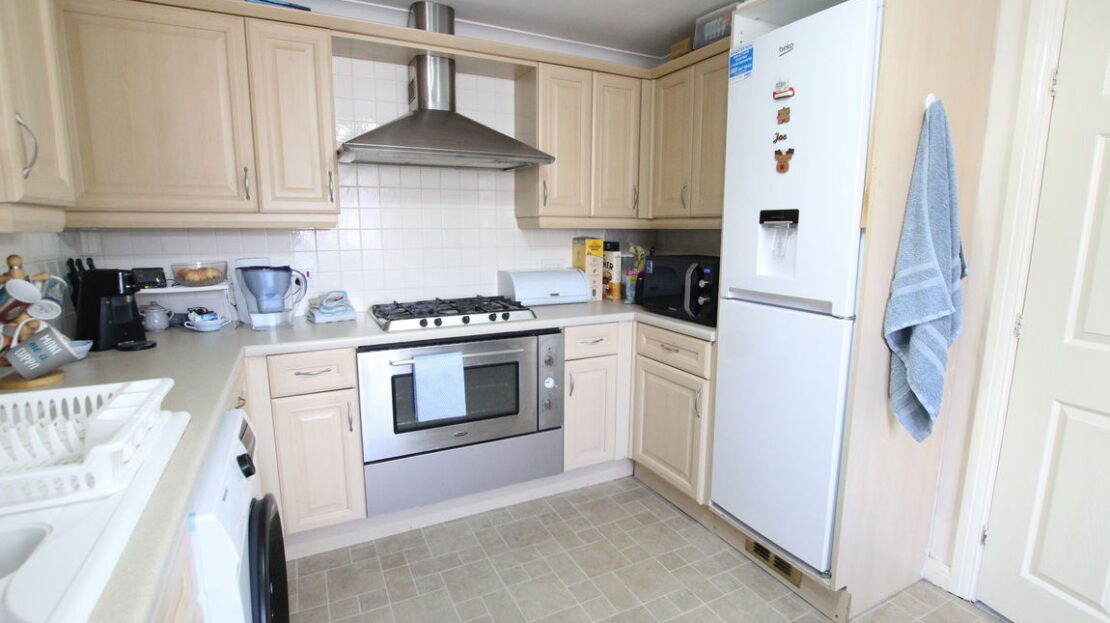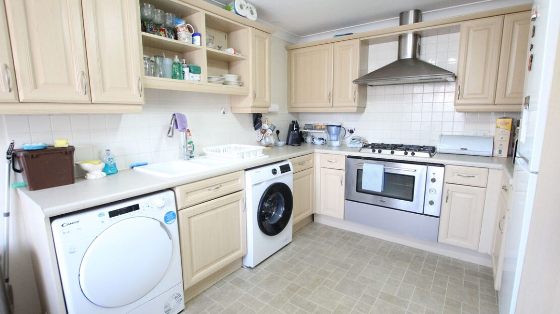 uPVC double glazed window to front elevation, double panel radiator, fitted kitchen comprising of sink unit with mixer tap over, roll top work surfaces, range of base units incorporating built-in stainless steel ‘five burner’ gas hob and electric oven, plumbing for washing machine, space for tumble dryer, space for fridge freezer, tiling to splash areas, matching range of wall mounted units incorporating stainless steel extractor hood, ideal area for table and chairs.