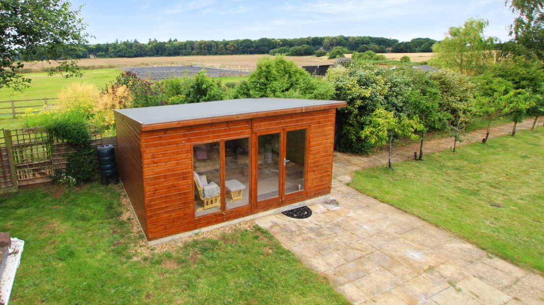 It boasts an extensive paved patio, timber 15ft X 11ft summerhouse with power. This summerhouse was constructed in 2021 and has two power points with USB (built and supplied by Greens of Mepal).