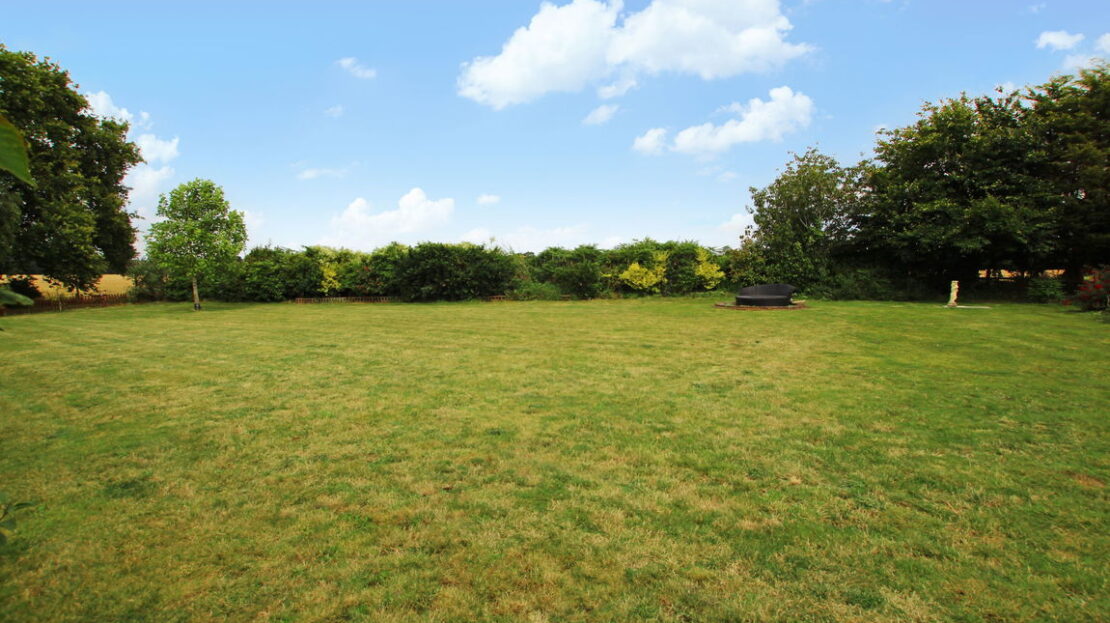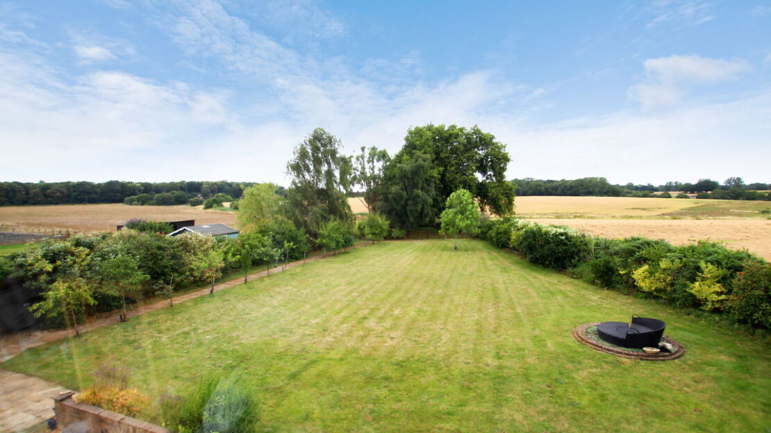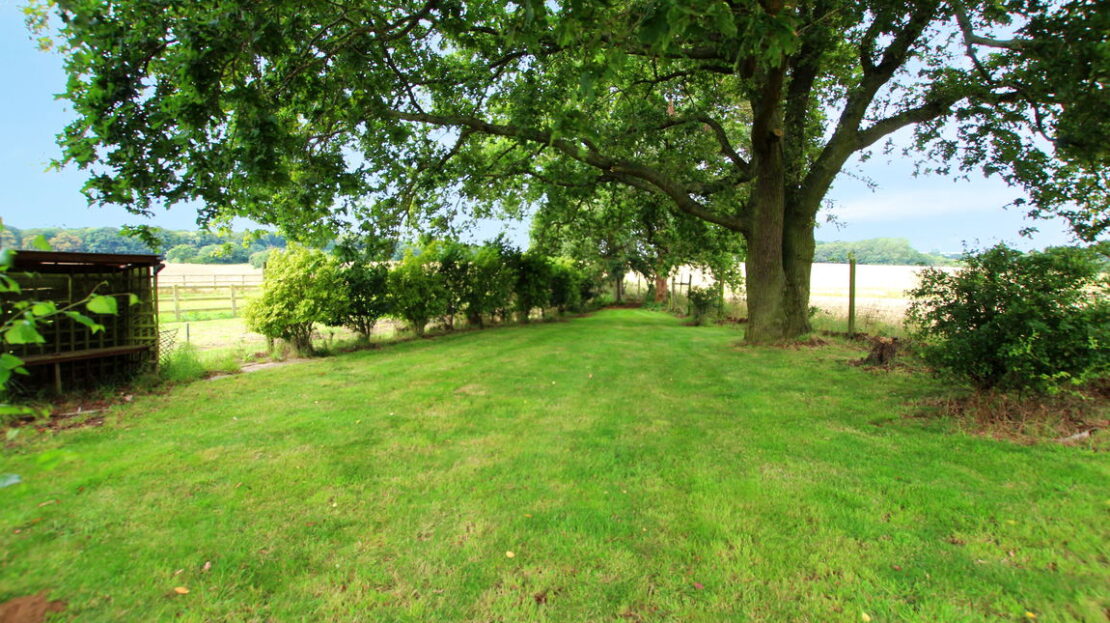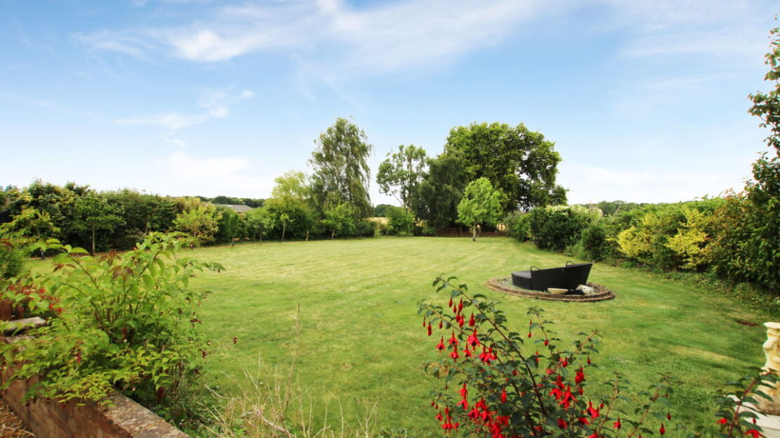 A stunning lawned generous garden, mainly laid to lawn with panoramic rear views across open neighbouring farmland and fields.