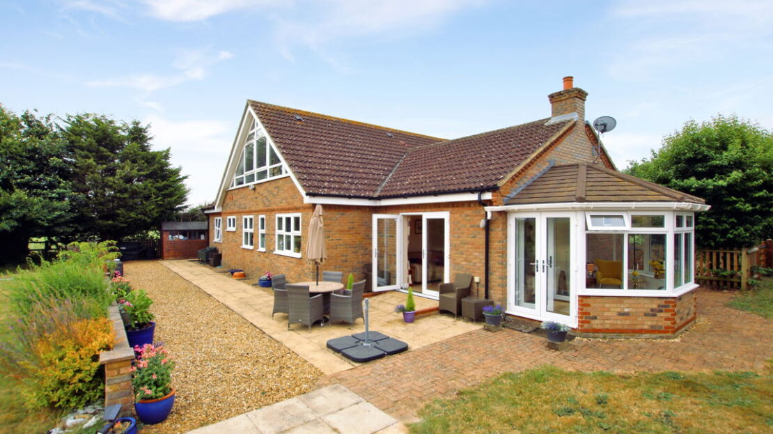 The Acorns is an extremely versatile five bedroom chalet style detached family home standing on a generous overall plot in excess of a third of an Acre. Located in a semi-rural position with stunning panoramic views across open neighbouring farmland and fields.