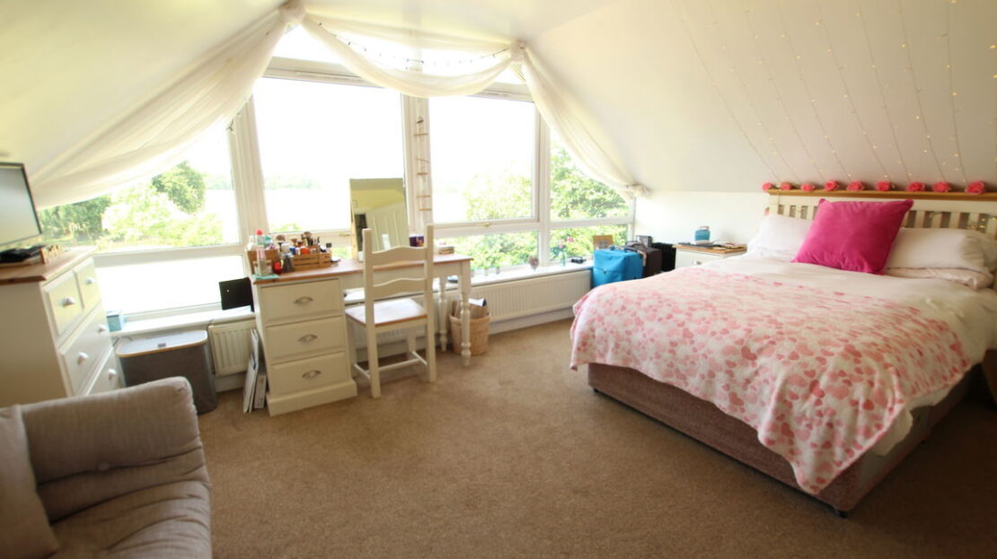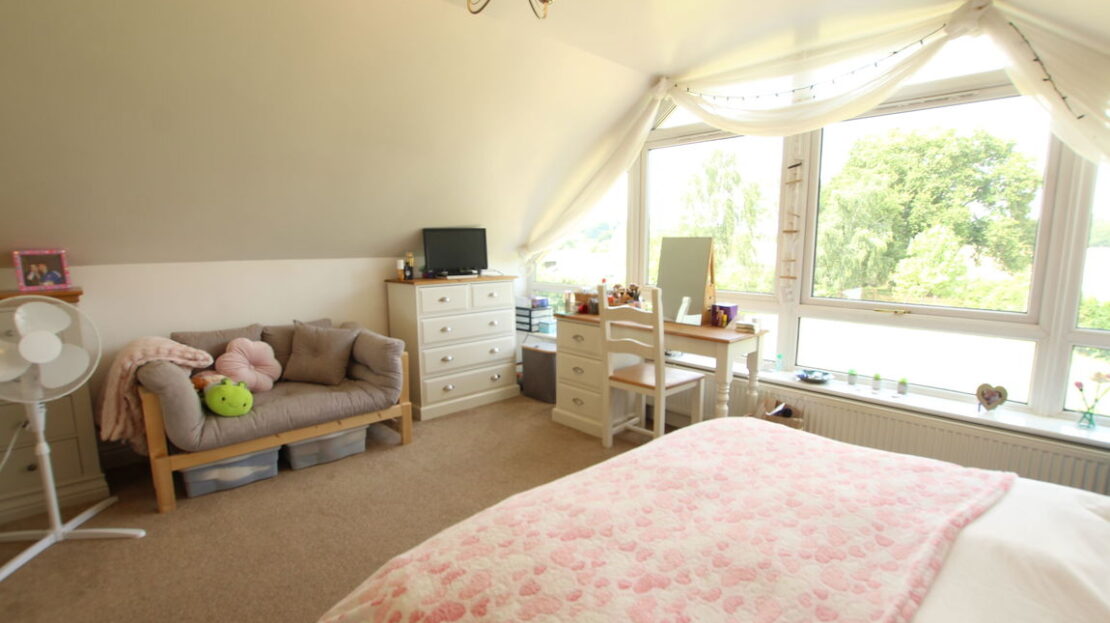 Feature uPVC double glazed full apex window to rear elevation enjoying stunning views across the gardens and neighbouring open fields, single panel radiator.
