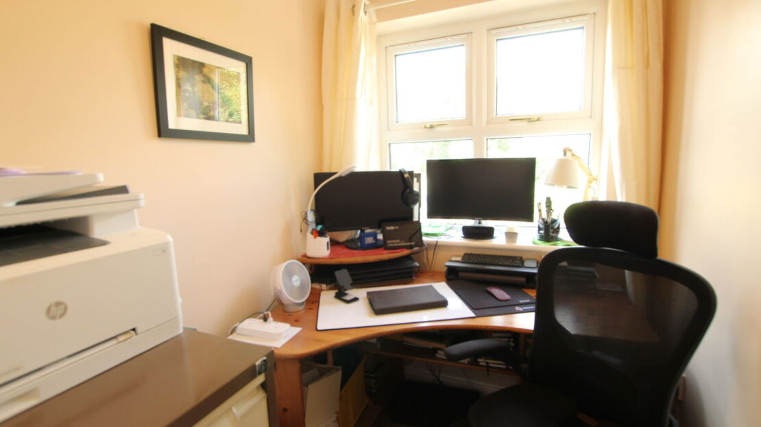 uPVC double glazed window to rear elevation, single/double panel radiator, laminated wood effect flooring, coving to ceiling (Broadband: upgraded in 2022 via BT to ultrafast broadband).