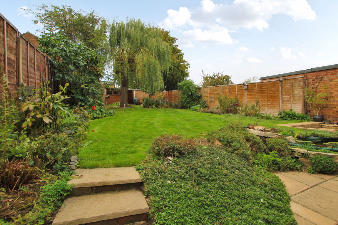 A generous mainly laid to lawn established rear garden in excess of 80ft in length (including the Conservatory), extensive paved patio with pond, rear 8ft X 6ft timber garden store/shed, side covered porch area.