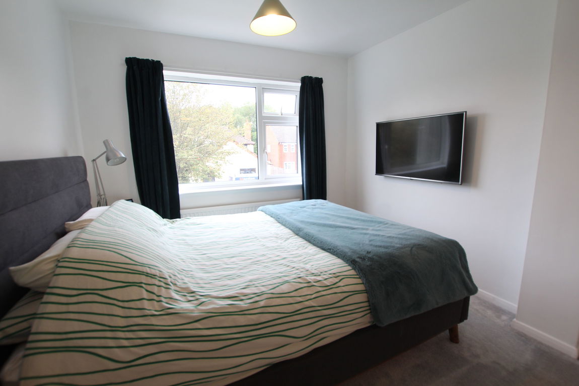 uPVC double glazed window to rear elevation, single panel radiator, built-in double door wardrobe with rail and shelf fitted.