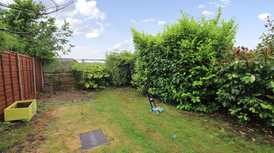 Extensive paved patio, rear lawn area, 10′ X 7′ garden store/shed, External oil fired Worcester boiler plus modern plastic oil tank.