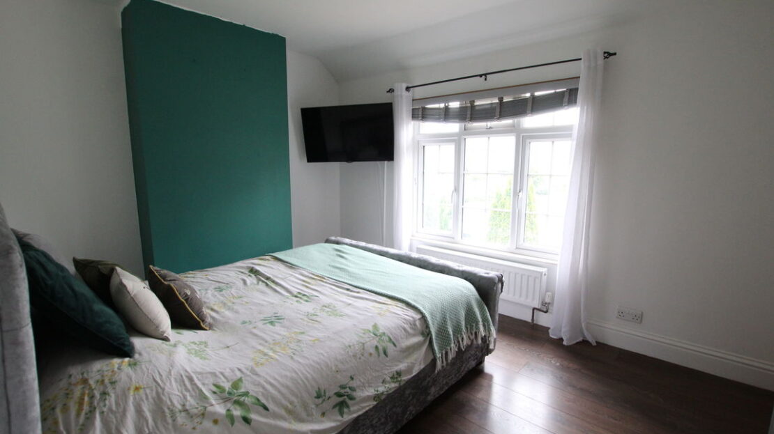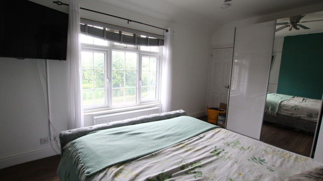 uPVC double glazed window to front elevation, double panel radiator, laminated wood effect flooring, built-in storage cupboard.