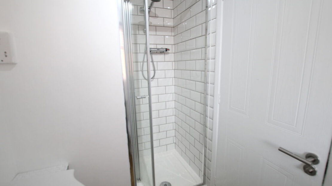 uPVC obscure double glazed window to side elevation, single panel radiator, modern three piece white suite comprising of low level W.C, wash hand basin, fully tiled shower cubicle, extractor fan.