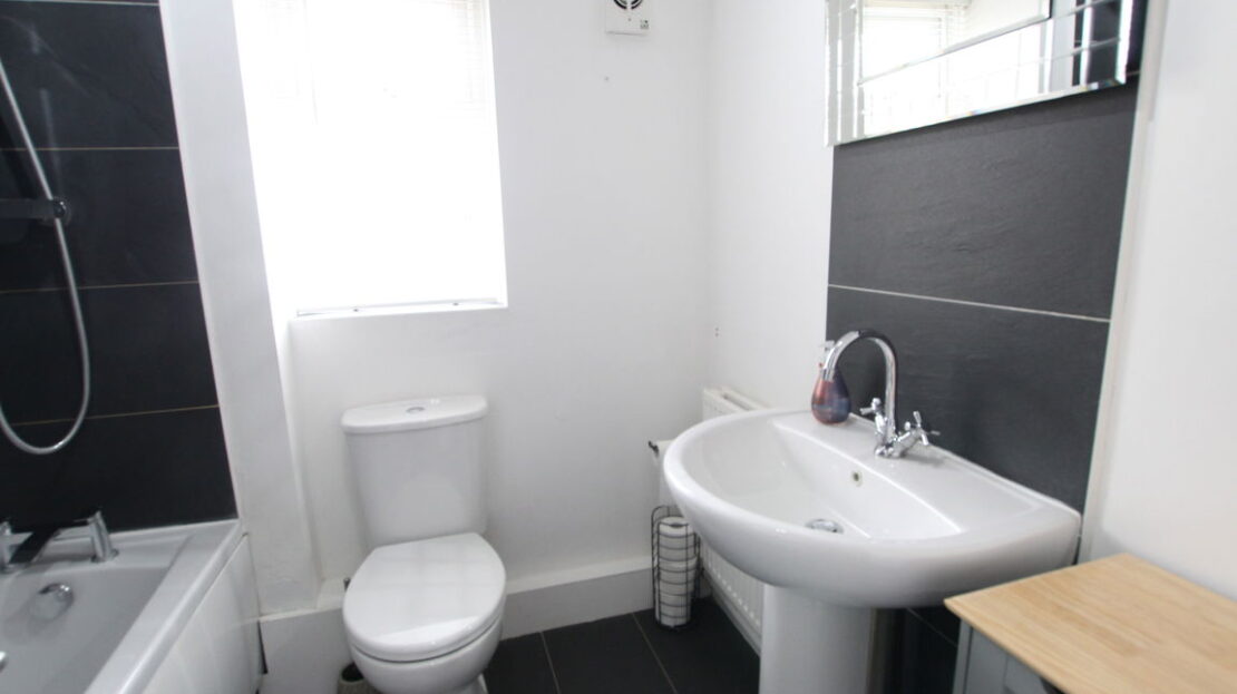 uPVC obscure double glazed window to rear elevation, double panel radiator, three piece suite comprising of low level W.C, wash hand basin, panel bath with mixer tap over plus fitted watering can style shower with second rinsing shower attachment, tiling to splash areas, tiled floor.