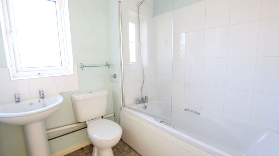 uPVC obscure double glazed window to side elevation, single panel radiator, three piece white suite comprising of low level W.C, wash hand basin, panel bath with shower/mixer tap over, tiling to splash areas.