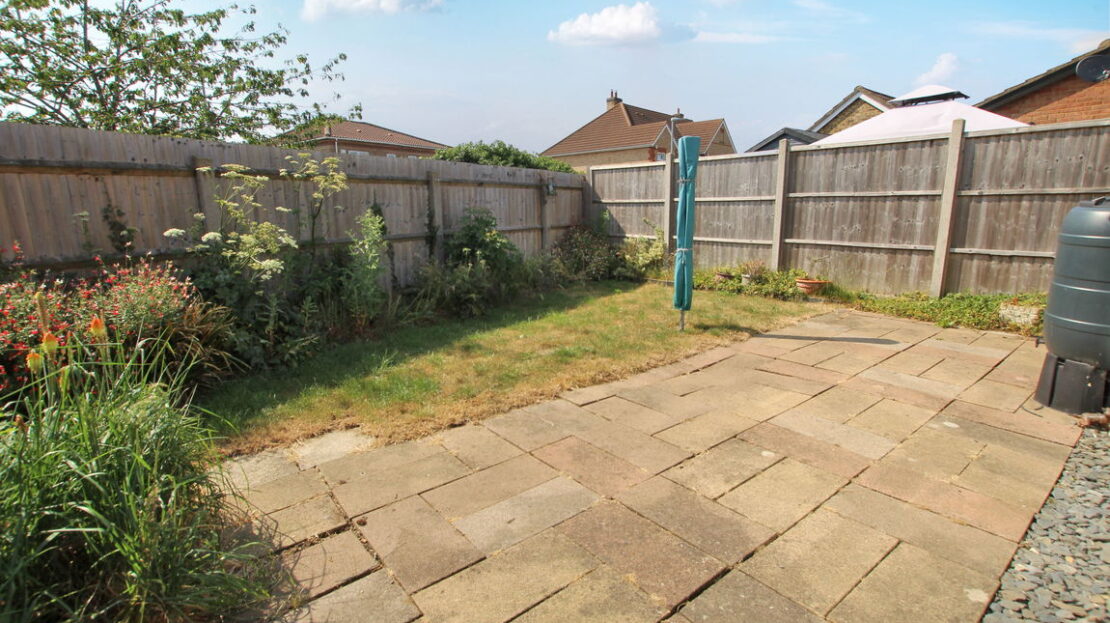 Mainly laid to lawn, paved patio, enclosed by timber panel fencing with lockable rear access gate.
