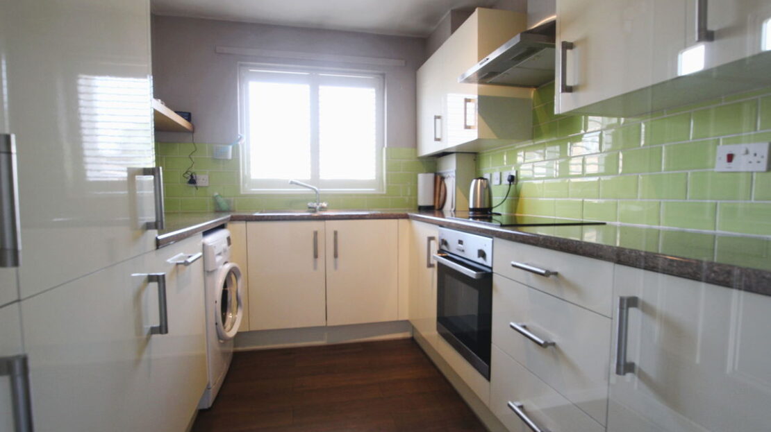 uPVC double glazed window to front elevation with feature bespoke slatted fitted shutters, extensive fitted kitchen comprising of single drainer stainless steel sink unit with mixer tap over, roll top work surfaces, range of base units incorporating built-in induction electric hob and electric oven, built-in dish washer (faulty), washing machine, built-in fridge freezer, tiling to splash areas, matching range of wall mounted units incorporating stainless steel extractor hood, wall mounted gas boiler with matching door.