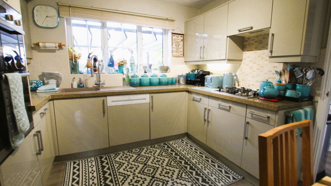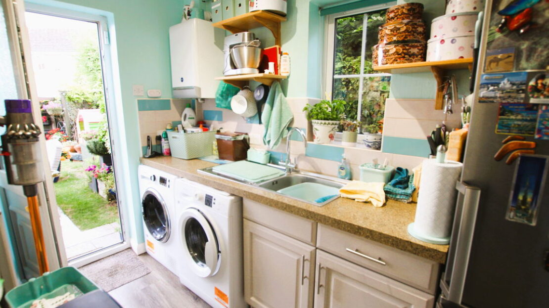 uPVC obscured double glazed door to rear elevation, uPVC double glazed window to side elevation, single panel radiator, continued range of base units incorporating single drainer stainless steel sink unit with mixer tap over, matching quartz topped work surfaces, Hotpoint washing machine, Hotpoint tumble dryer, plus free-standing Fridge Freezer, wall mounted gas boiler (serviced annually by British Gas) and fire rated access door to the integral garage.