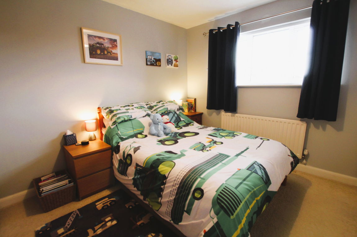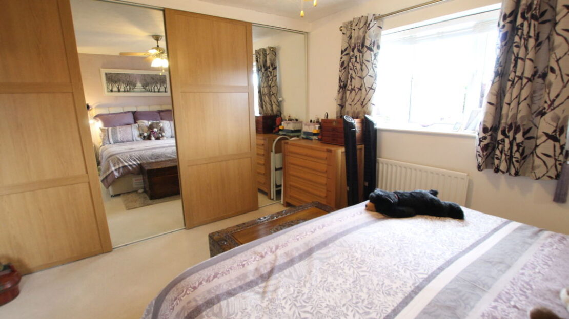 uPVC double glazed window to front elevation, single panel radiator, free standing three door wardrobe with rail and shelf fitted, built-in storage cupboard.