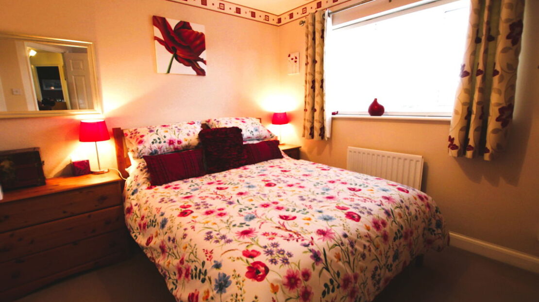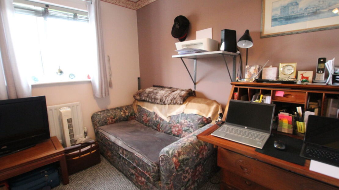 uPVC double glazed window to rear elevation, single panel radiator, free standing four door wardrobe with rail and shelf fitted plus drawer unit below.