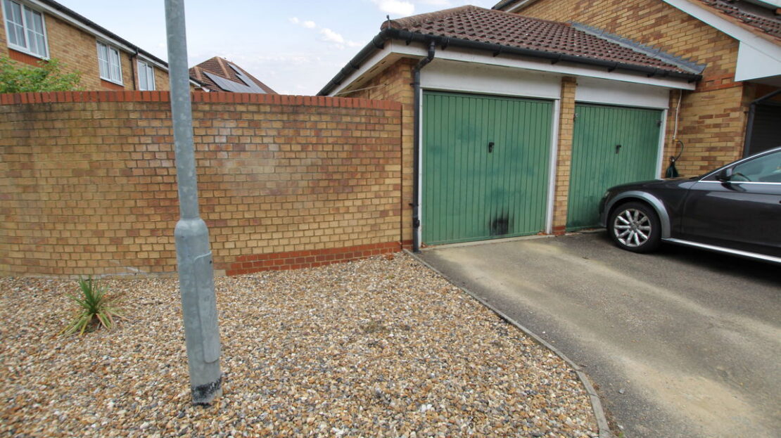 16′ 8 deep garage with up and over door, power and light connected, storage to eave space above, access door to rear garden.
