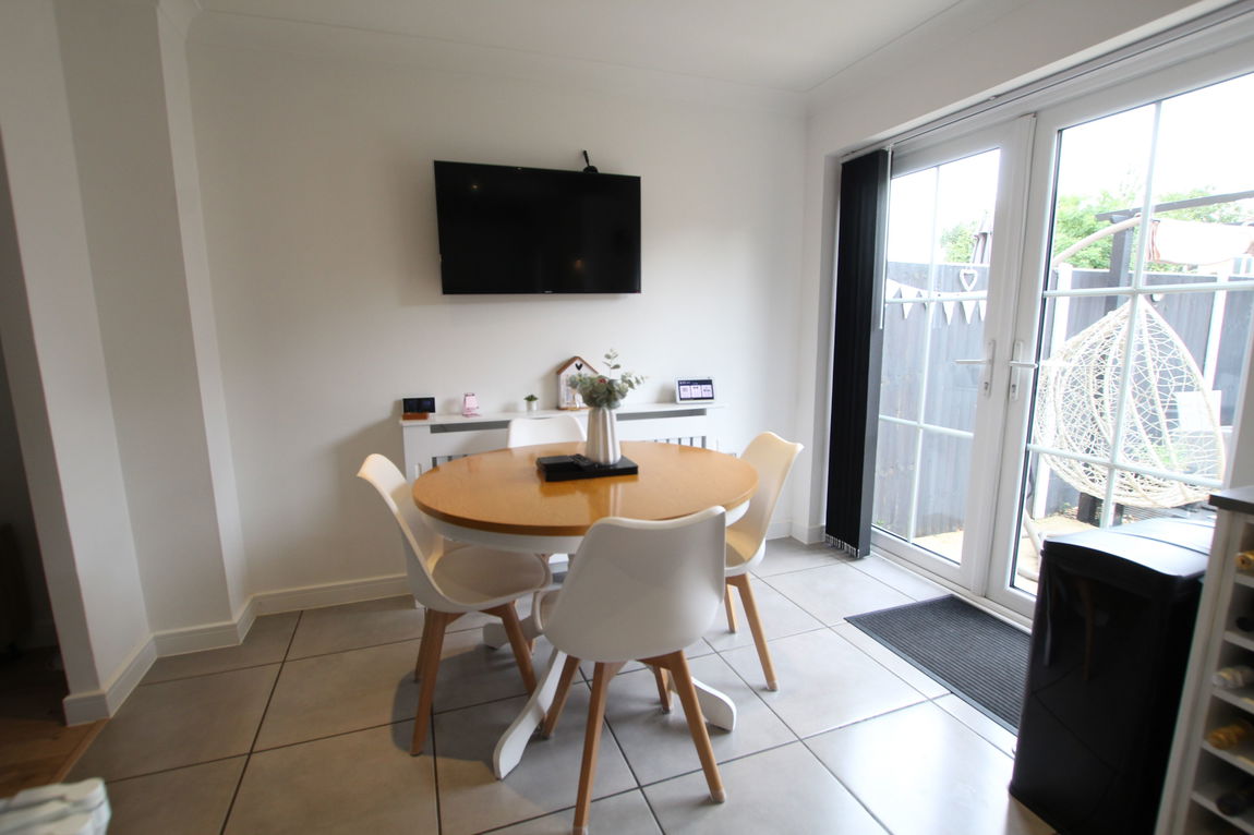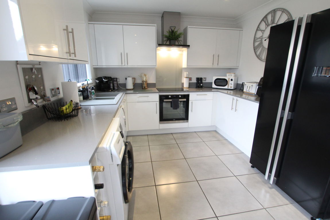 uPVC double glazed window to rear elevation, twin uPVC double glazed patio doors to rear elevation single panel radiator, extensive modern fitted kitchen comprising of single drainer sink unit with mixer tap over, quartz effect work surfaces, range of base units incorporating built-in electric hob and electric oven with separate grill, plumbing for slim dish washer, plumbing for washing machine, space for fridge freezer, matching range of wall mounted units incorporating stainless steel extractor hood, ideal area for table and chairs.