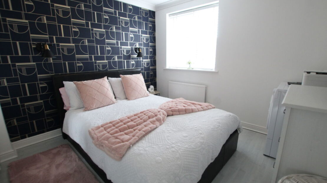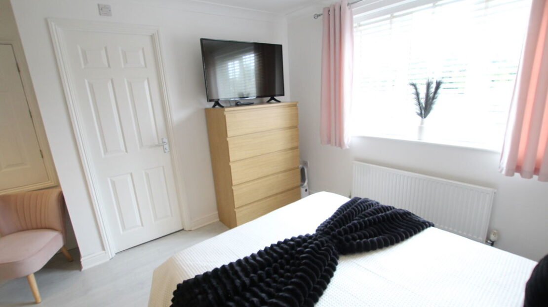 Master Bedroom 12’10 max reducing to 11’3 X 11’2 not including door recess