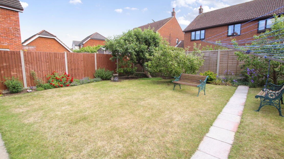 Mainly laid to lawn, paved patio, enclosed by 6′ timber panel fencing.