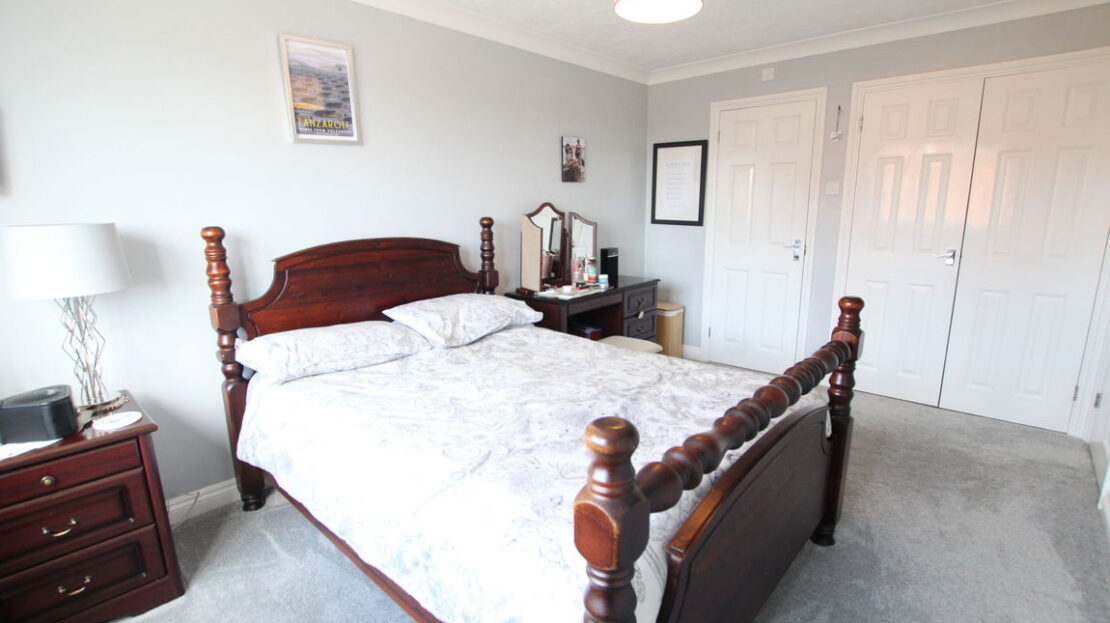 uPVC double glazed window to front elevation, single panel radiator, built-in double door wardrobe with rail and shelf fitted, coving to ceiling, door to: