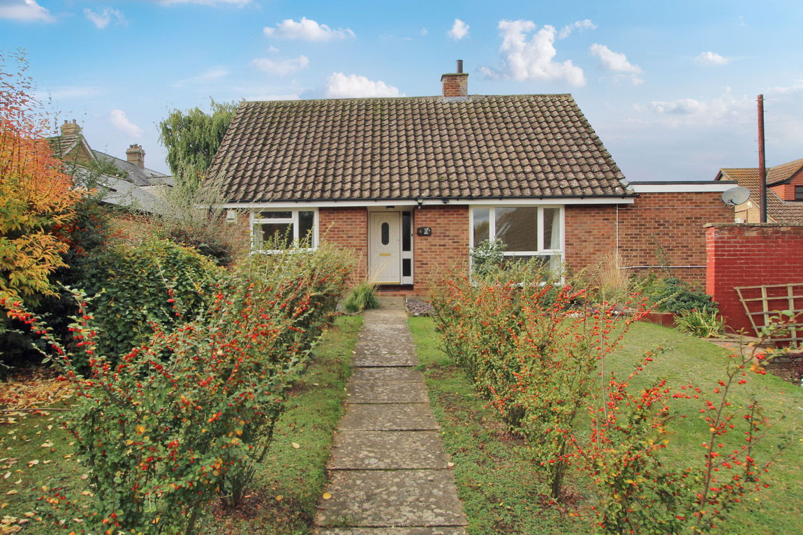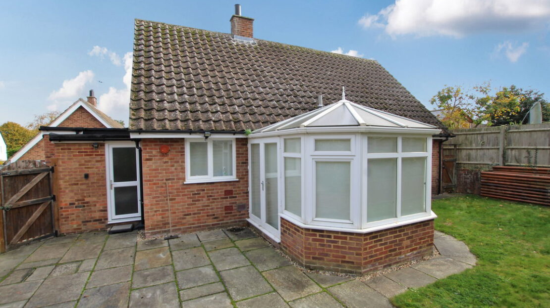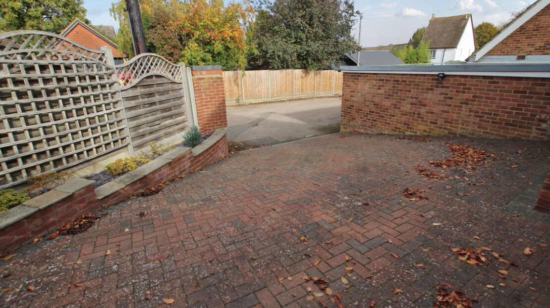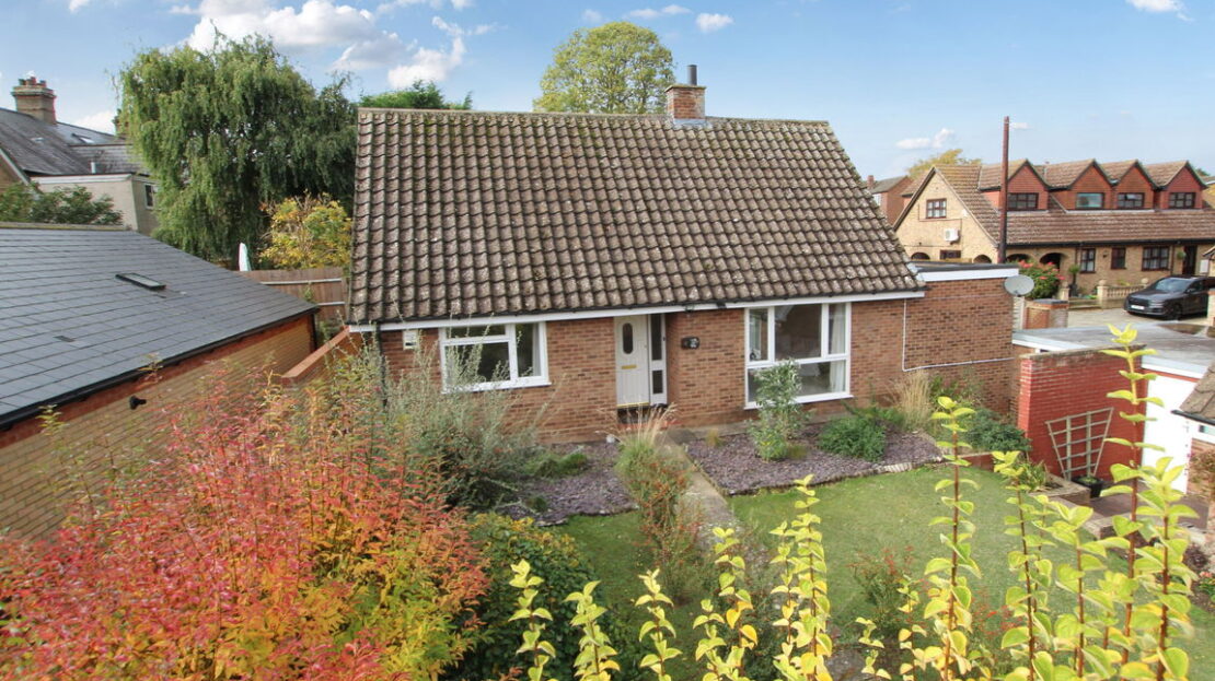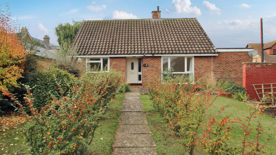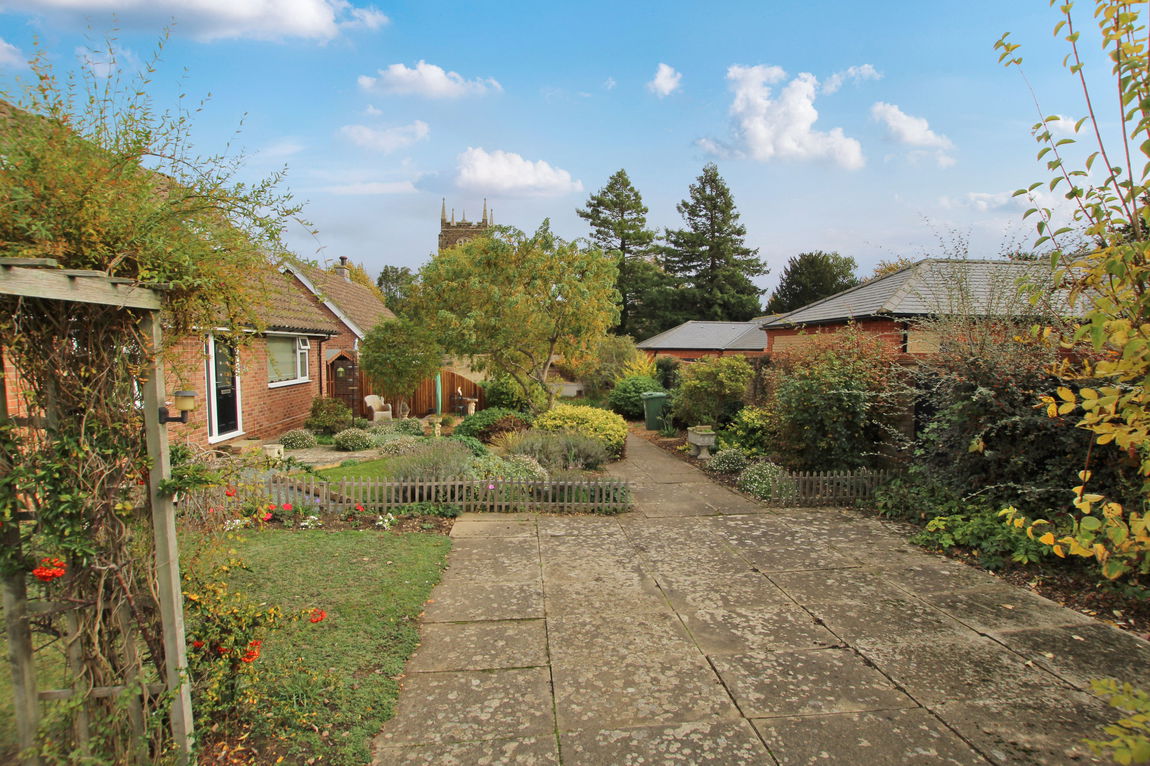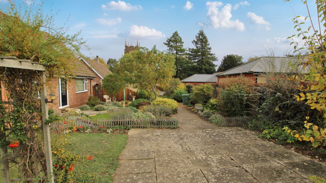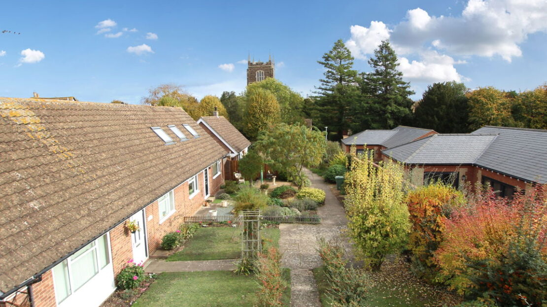 Manor Court has a gated pedestrian entrance serving just four properties, with pathway leading to chipped slated frontage and enjoying views of Blunham Church.
