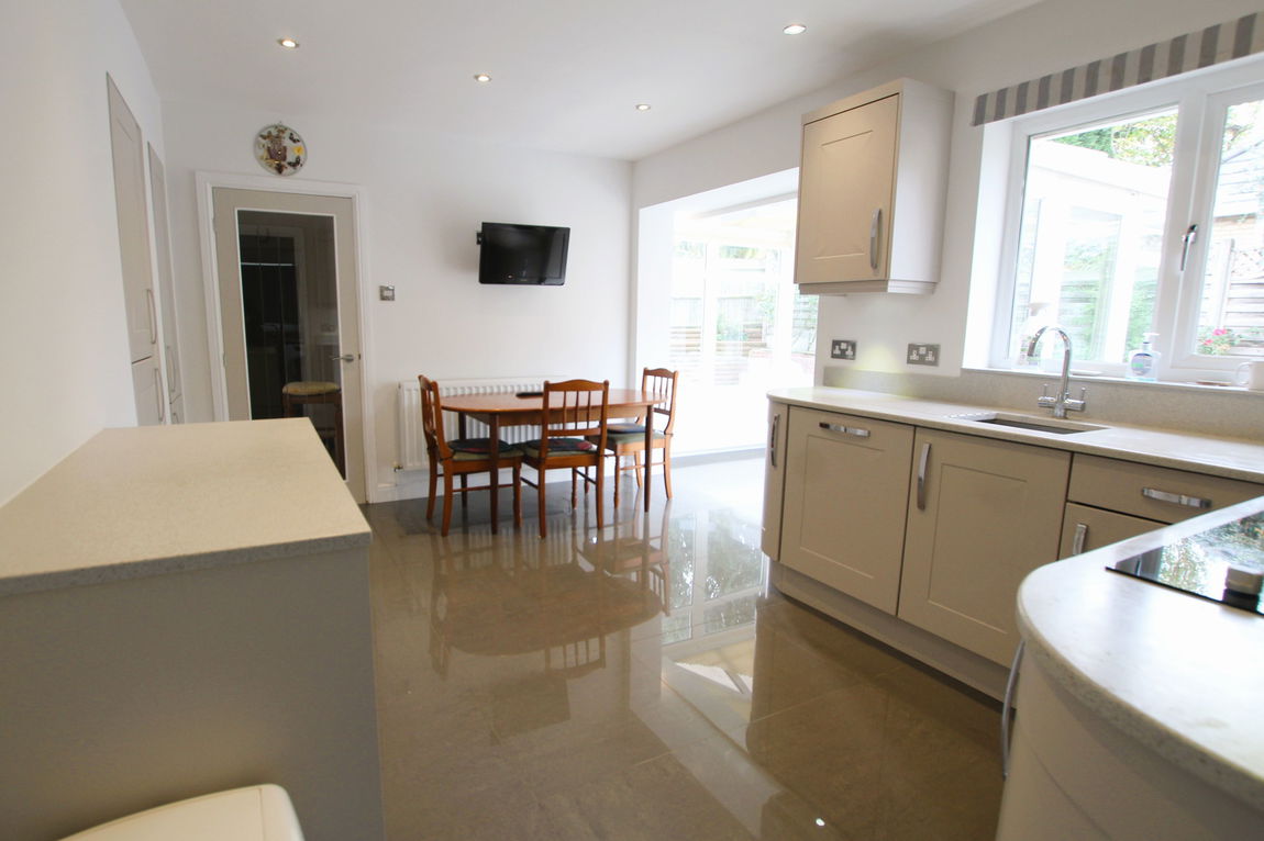 An open plan conservatory running into the breakfast/dining area of the kitchen, uPVC double glazed brick based conservatory with double panel radiator, high gloss’ tiled floor, twin doors opening onto patio and garden.