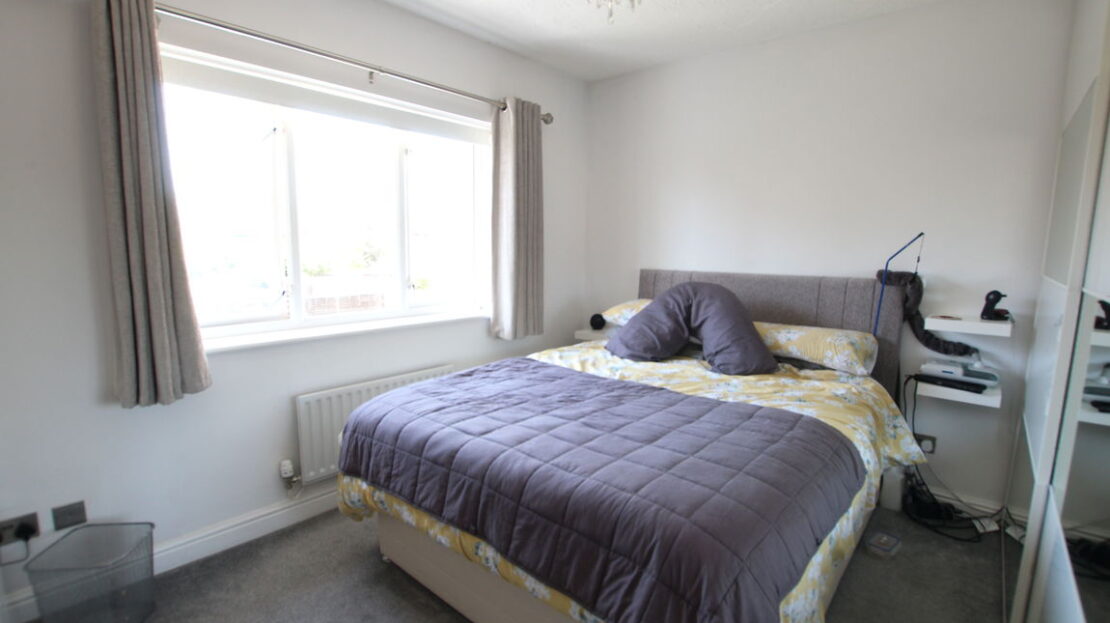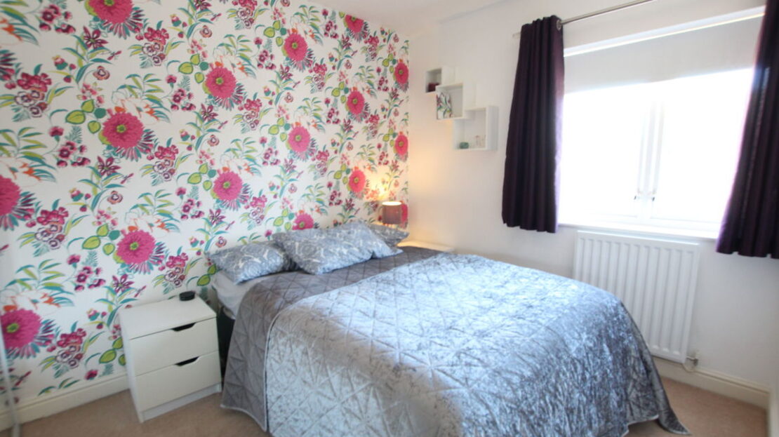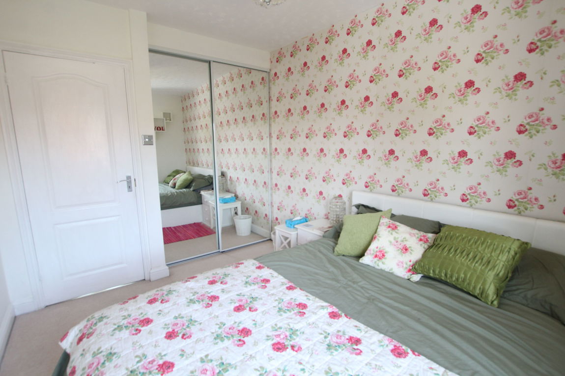 uPVC double glazed window to rear elevation, single panel radiator, built-in sliding door wardrobe with rail and shelf fitted, coving to ceiling.