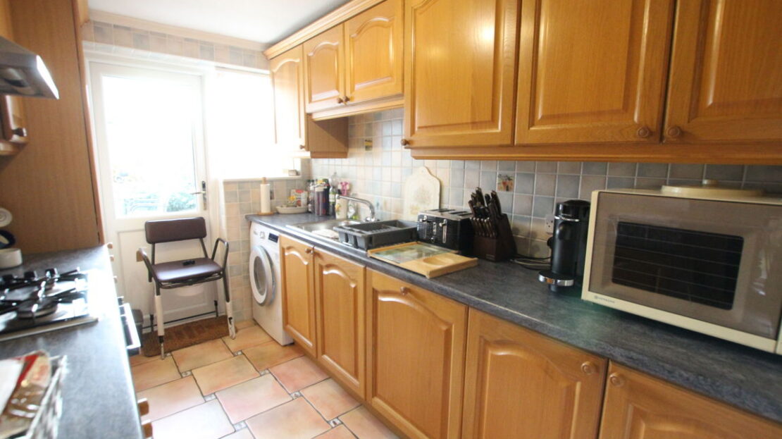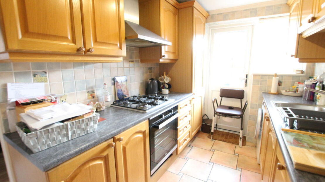 uPVC double glazed window to rear elevation, fitted kitchen comprising of single drainer stainless steel sink unit with mixer tap over, roll top work surfaces, range of base units incorporating built-in stainless steel gas hob and electric oven, plumbing for washing machine, built-in fridge freezer, tiling to splash areas, matching range of wall mounted units incorporating stainless steel extractor hood, built in storage cupboard.