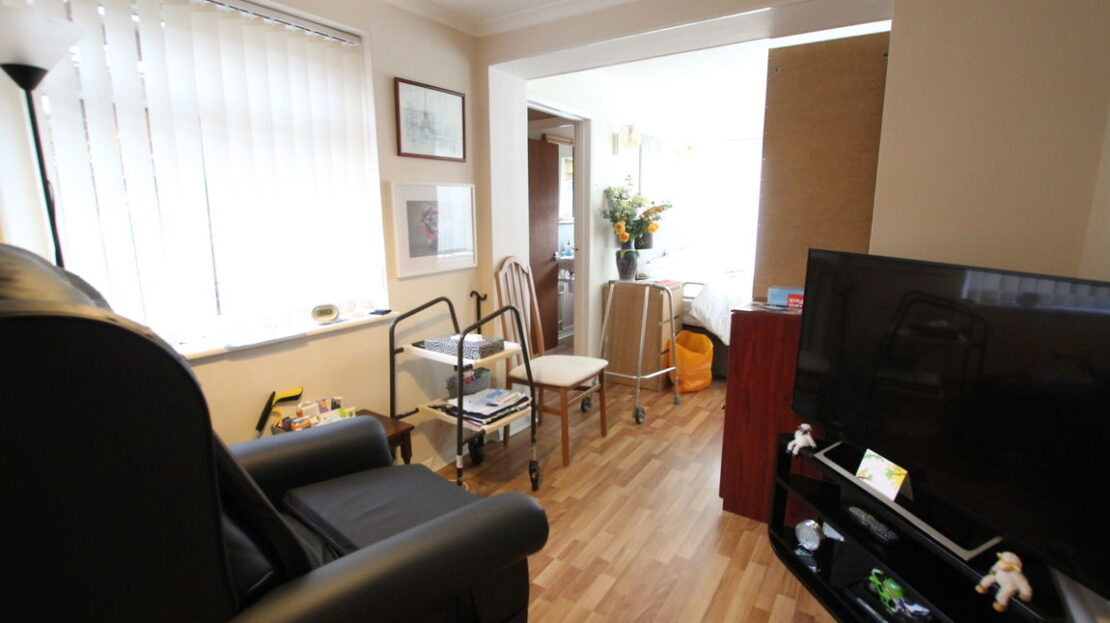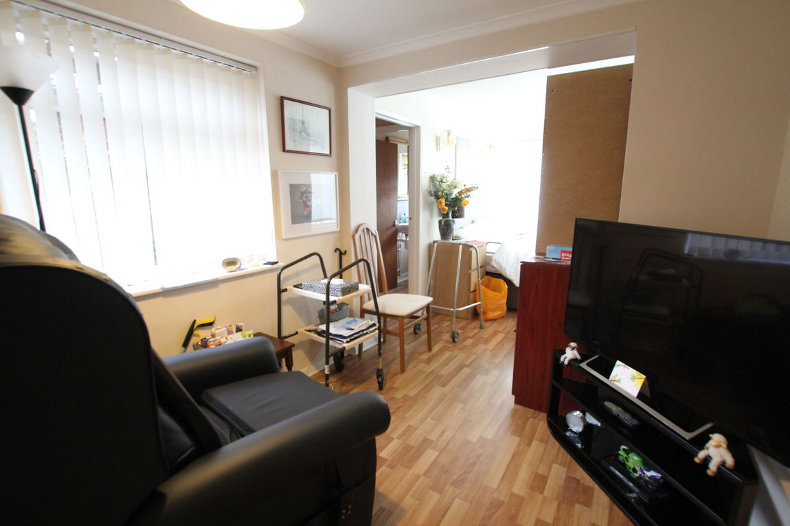 Triple aspect room with uPVC double glazed windows to both side elevations and uPVC double glazed sliding door to rear elevation, single panel radiator, laminated wood effect flooring, coving to ceiling, door to: