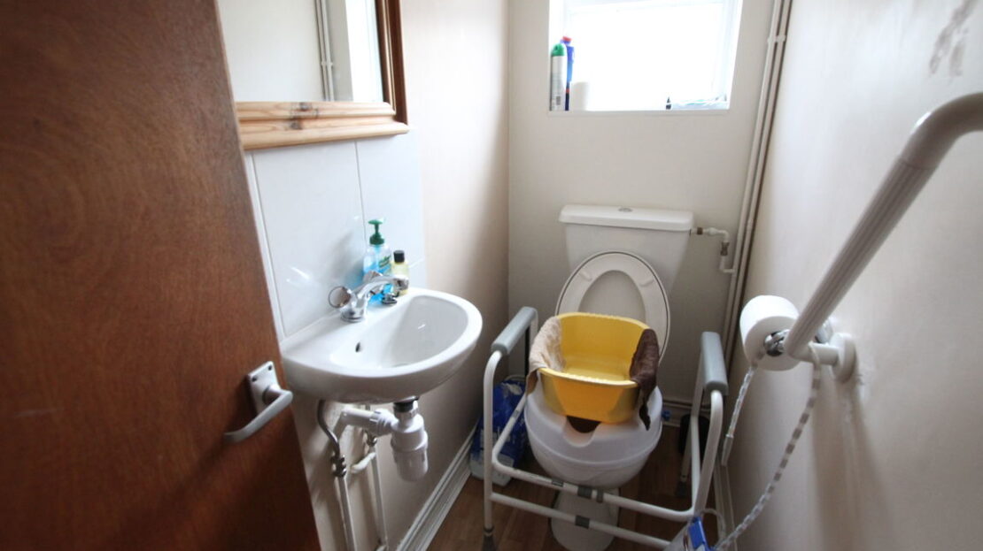 uPVC obscure double glazed window to rear elevation, two piece modern white suite comprising of low level W.C, wash hand basin, tiling to splash areas.
