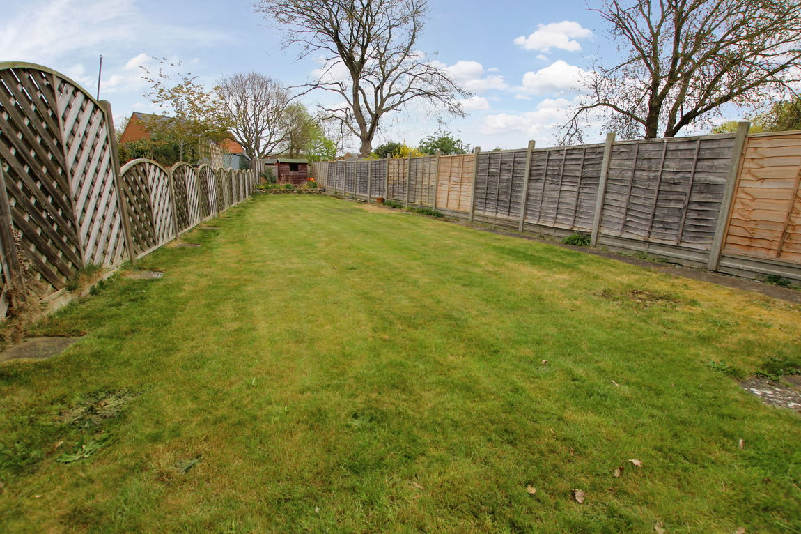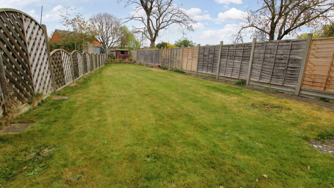 Extending to in excess of 100ft, mainly laid to lawn, paved patios, timber garden store/shed, enclosed by timber panel fencing.