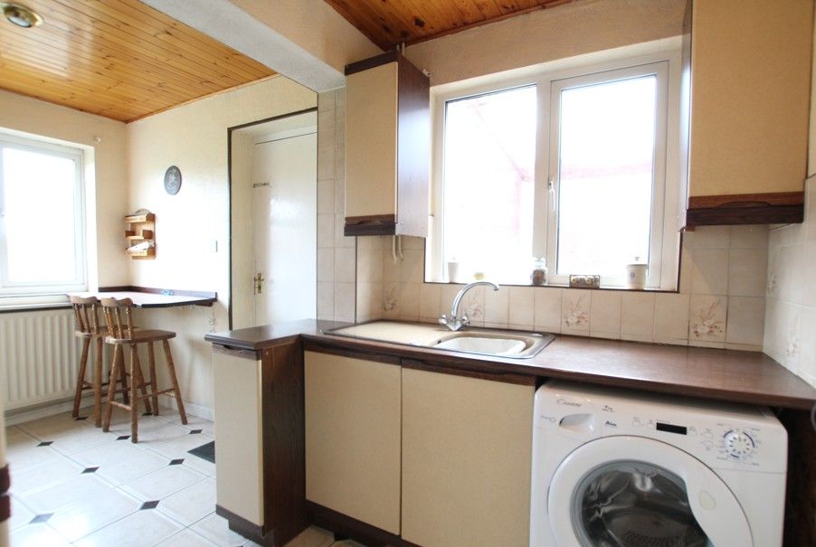 Dual aspect extended room with uPVC double glazed windows to side and rear elevations, single and double panel radiators, fitted kitchen comprising of single drainer sink unit with mixer tap over, roll top work surfaces, range of base units incorporating space for cooker, plumbing for washing machine, space for fridge, tiling to splash areas, matching range of wall mounted units incorporating extractor hood, fitted end breakfast bar.