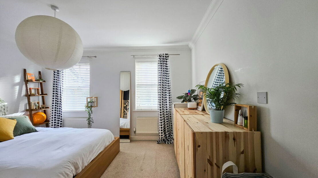 Twin sash style wood double glazed windows to front elevation, twin single panel radiators, coving to ceiling, door to: