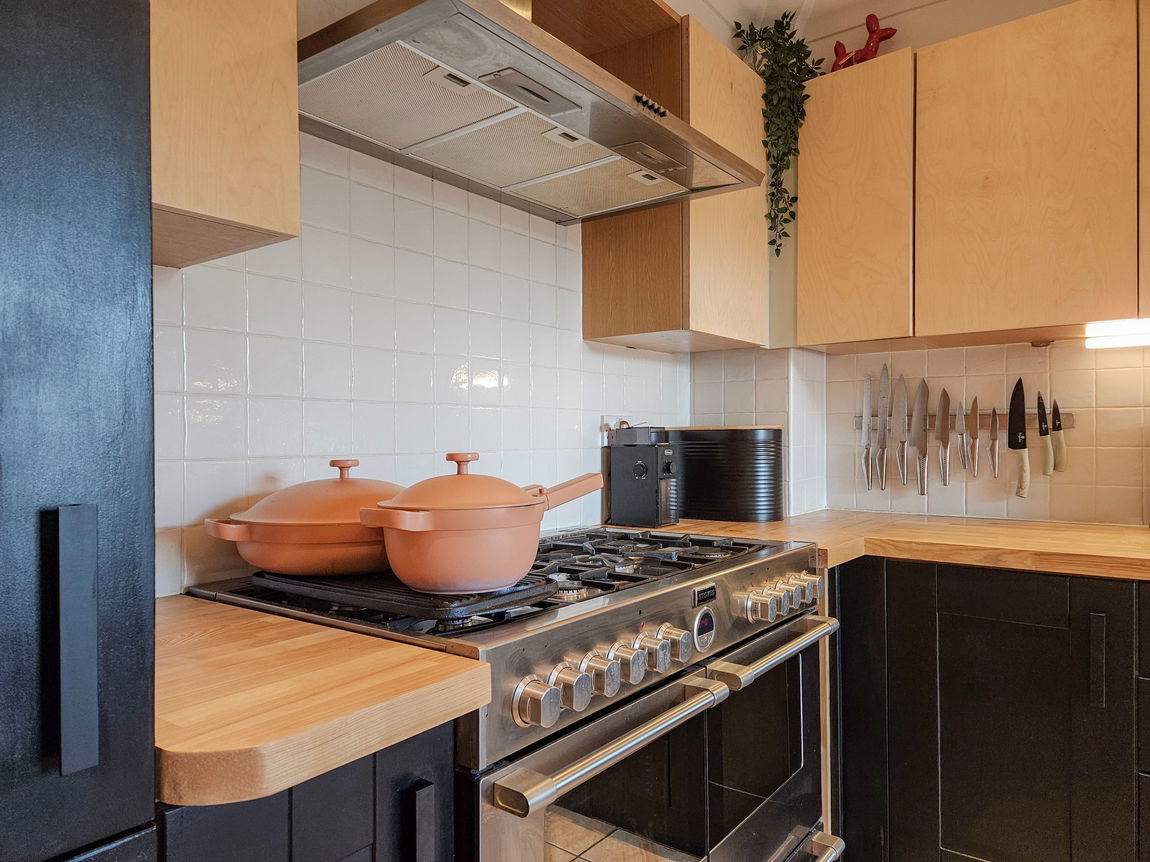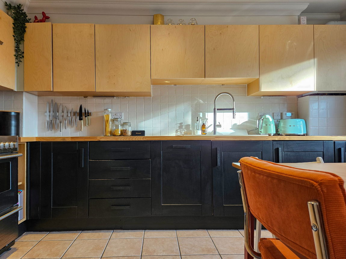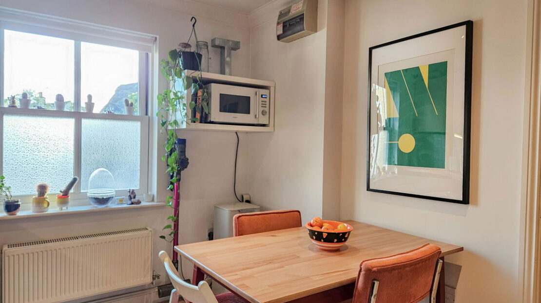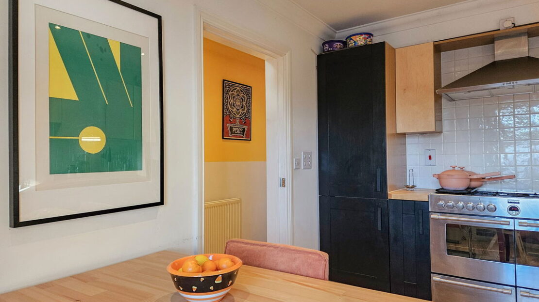 Sash style wood double glazed window to front elevation, double panel radiator, extensive modern fitted kitchen comprising of single drainer stainless steel sink unit with mixer tap over, roll top work surfaces, range of base units incorporating 1000mm stainless steel ‘Stoves’ Cooker Range with seven gas hobs and twin electric ovens, built-in dish washer, built-in washing machine, built-in fridge freezer, tiling to splash areas, matching range of wall mounted units incorporating wall mounted gas boiler plus a 900mm stainless steel extractor hood, ideal area for table and chairs.