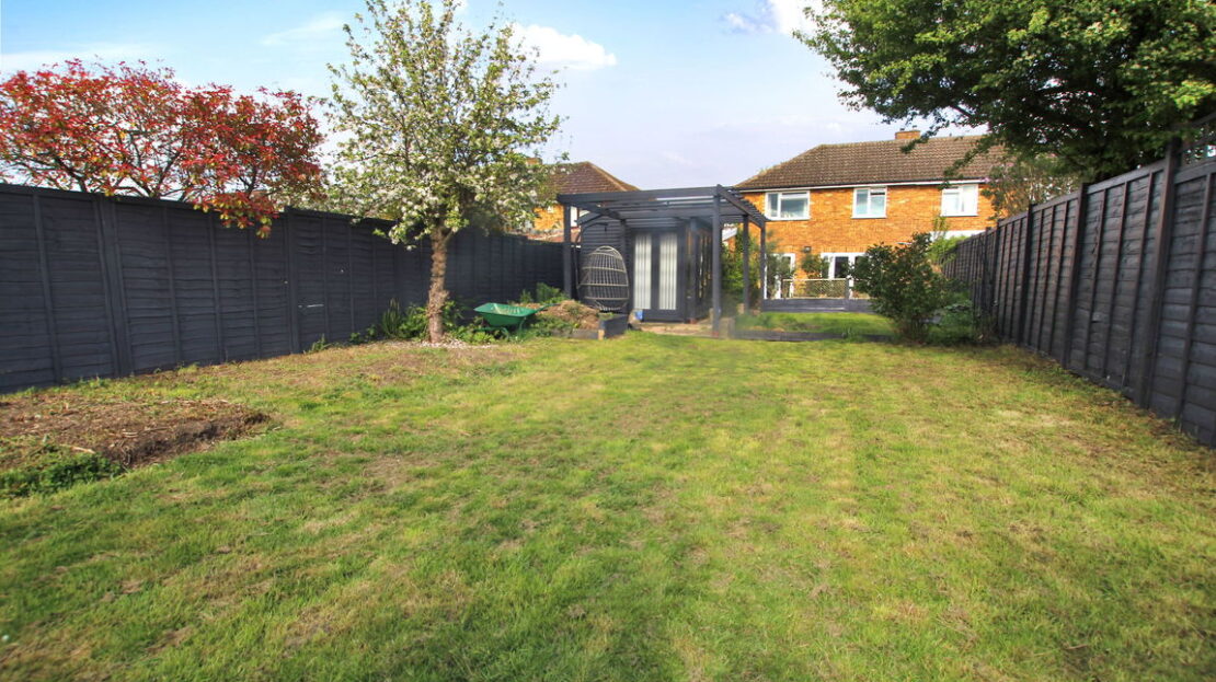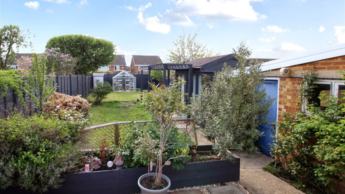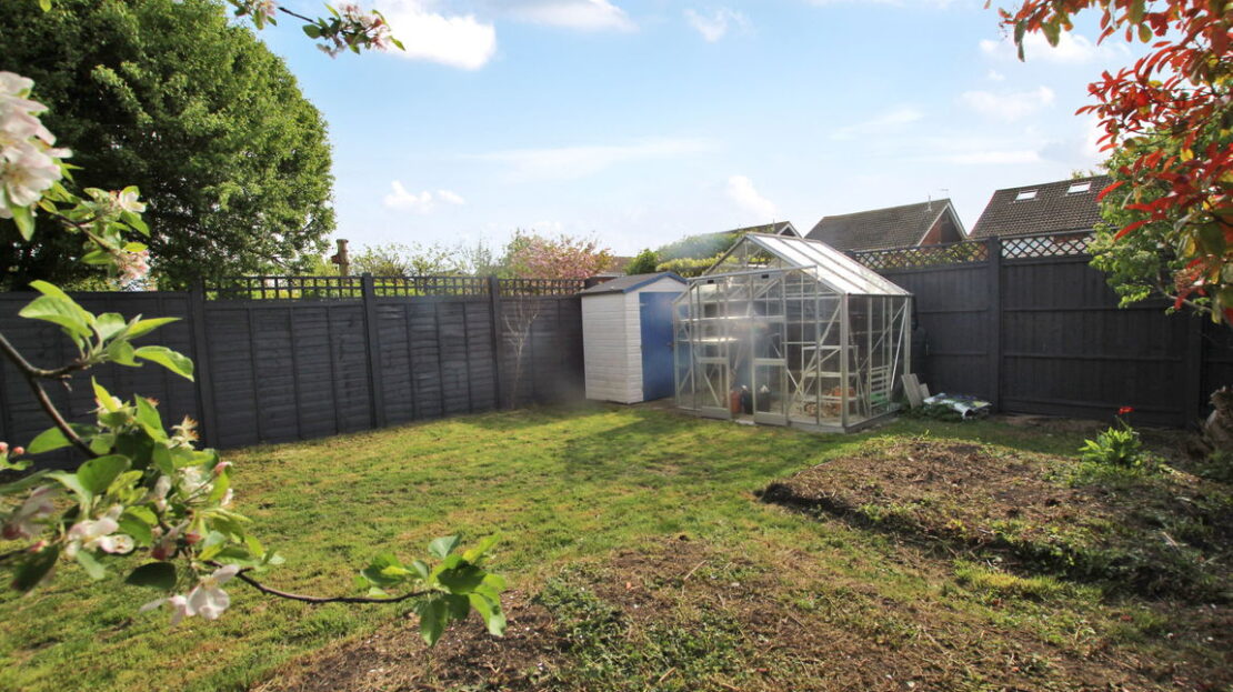 A generous rear garden reaching in excess of 90ft in length, mainly laid to lawn, paved patio, timber garden store/shed, greenhouse.