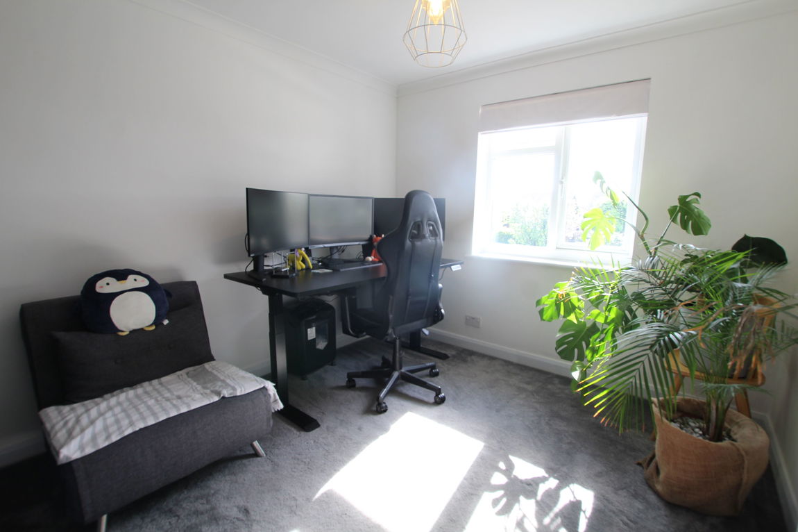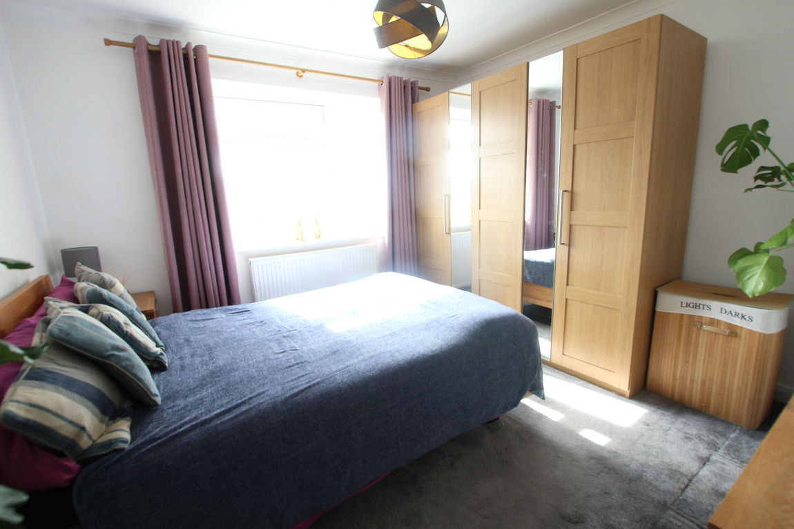 uPVC double glazed window to rear elevation, double panel radiator, fitted free standing wardrobe with sliding doors plus rail and shelf fitted, coving to ceiling.