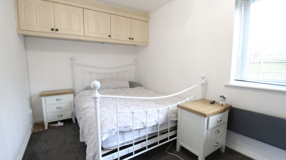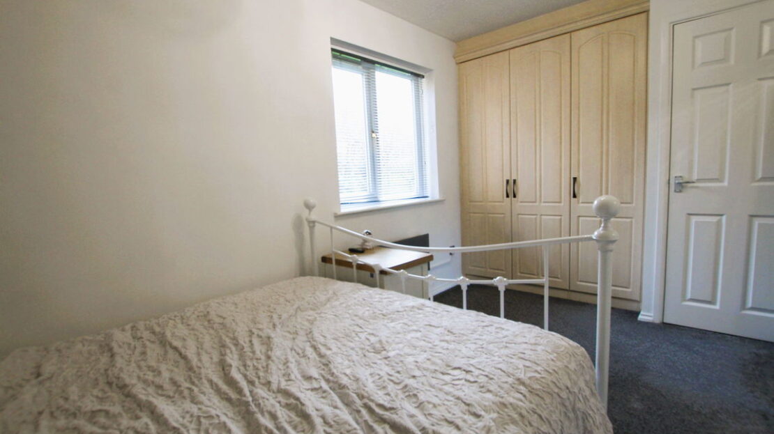 uPVC double glazed window to rear elevation, wall mounted Adax Neo Compact Wi-Fi electric heater, fitted triple door wardrobe with rail and shelf fitted, plus over bed units, in airing cupboard housing hot water tank.