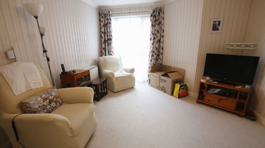uPVC double glazed picture window to rear elevation with elevated views over main gardens, pull cord Warden alarm, wall mounted electric storage heater, coving to ceiling, double doors to:
