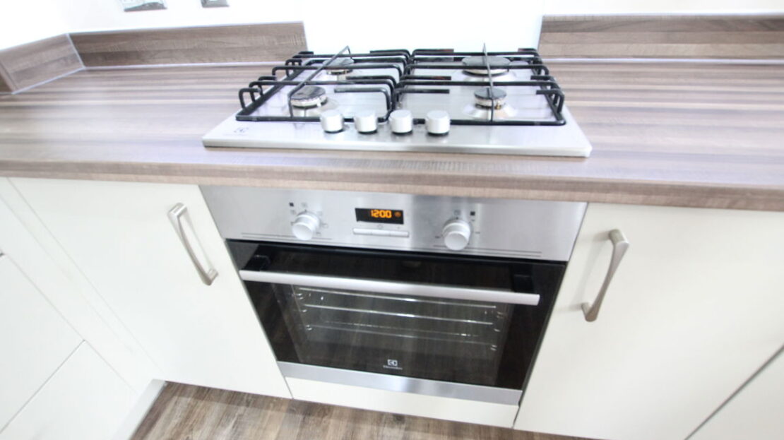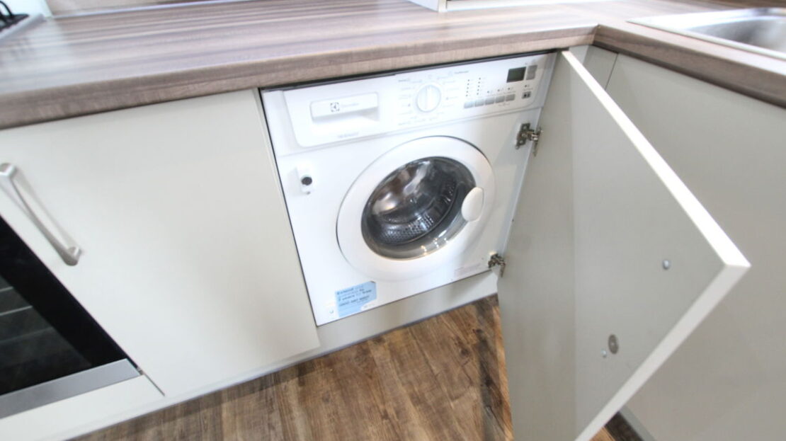 uPVC double glazed window to front elevation, modern fitted kitchen comprising of single drainer stainless steel sink unit with mixer tap over, ‘Butchers Block’ effect roll top work surfaces, range of base units incorporating built-in stainless steel gas hob and electric oven, built-in dish washer, built-in washer/dryer, built-in fridge freezer, matching range of wall mounted units incorporating extractor hood, corner cupboard housing wall mounted laminated wood effect flooring.