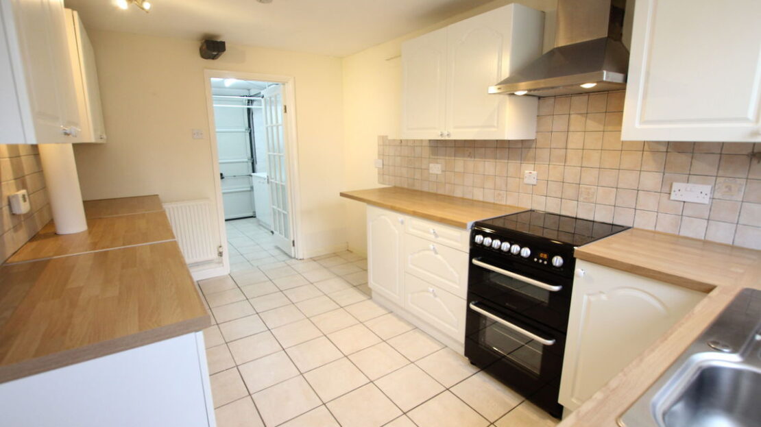 uPVC double glazed window and door to rear elevation, double panel radiator, vertical towel rail/radiator, fitted kitchen comprising of single drainer stainless steel sink unit with mixer tap over, roll top work surfaces, range of base units incorporating free standing electric oven, plumbing for dish washer, space for fridge freezer, tiling to splash areas, matching range of wall mounted units incorporating stainless steel extractor hood, floor standing oil boiler plus tiled floor, door to: