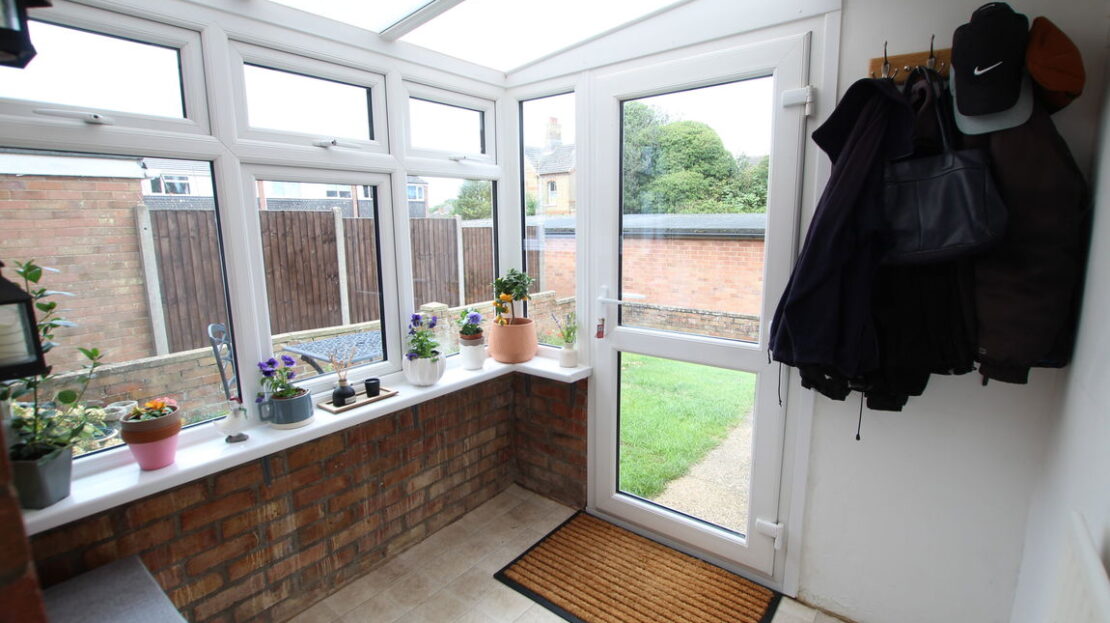 Brick based uPVC double glazed conservatory/garden room, uPVC double glazed double doors to rear elevation to garden, single panel radiator.