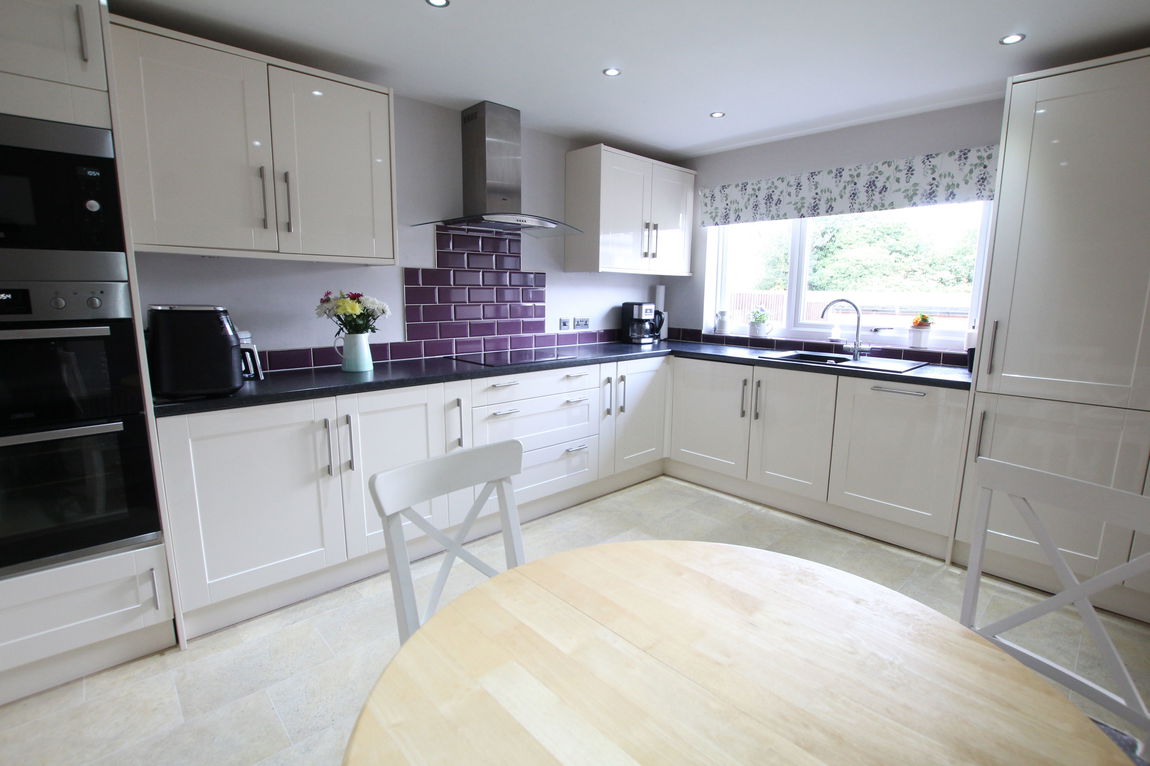 uPVC double glazed window to rear elevation, double panel radiator, fitted kitchen comprising of sink unit with mixer tap over, roll top work surfaces, range of base units incorporating built-in electric hob and double electric oven, built in microwave, built-in dish washer, built-in washing machine, built-in fridge freezer, tiling to splash areas, matching range of wall mounted units incorporating extractor hood, ideal area for table and chairs.