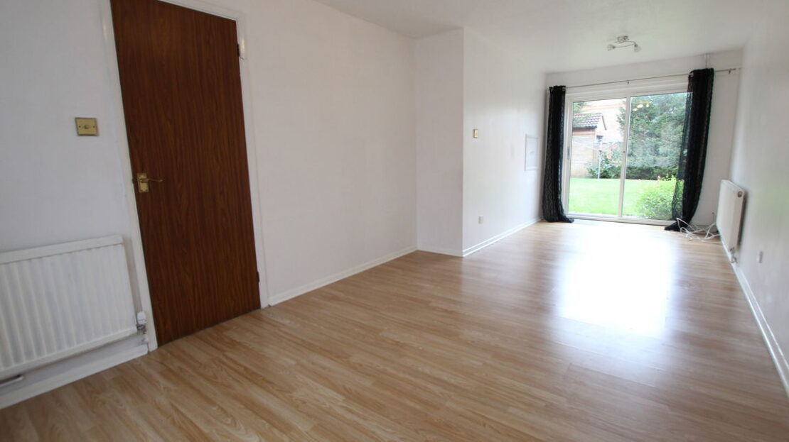 Dual aspect room with uPVC double glazed window to front elevation and uPVC double glazed sliding patio door to rear elevation, two single panel radiators, laminated wood effect flooring, coving to ceiling.