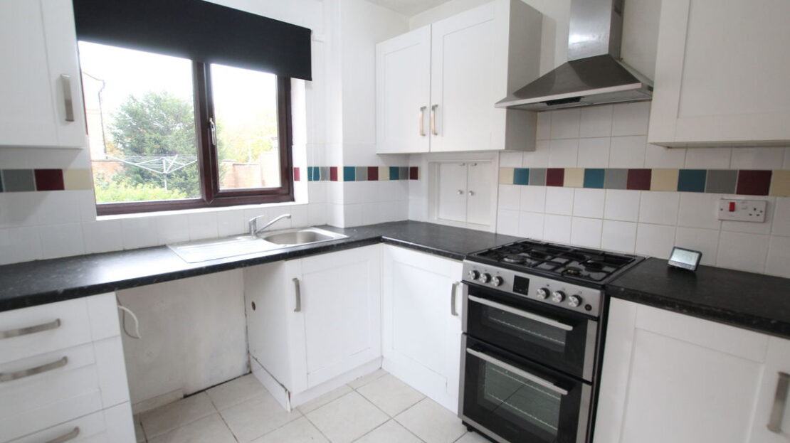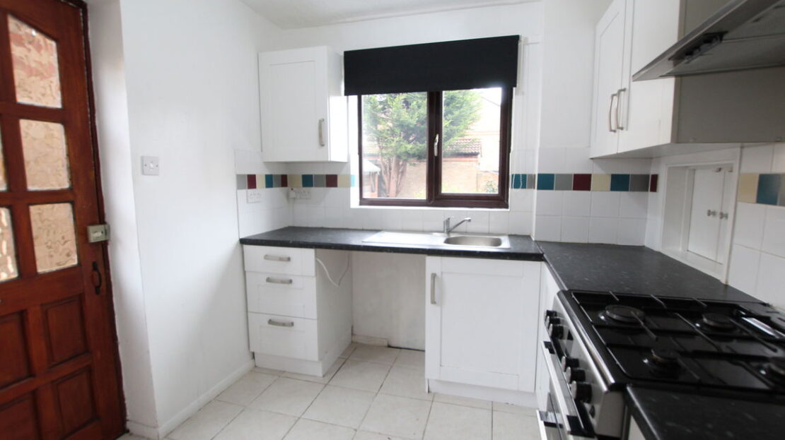 uPVC double glazed window to rear elevation, glazed door to side elevation, double panel radiator, fitted kitchen comprising of single drainer stainless steel sink unit with mixer tap over, roll top work surfaces, range of base units incorporating free standing cooker, plumbing for washing machine, space for fridge freezer, tiling to splash areas, matching range of wall mounted units incorporating stainless steel extractor hood, tiled floor.