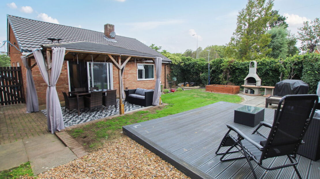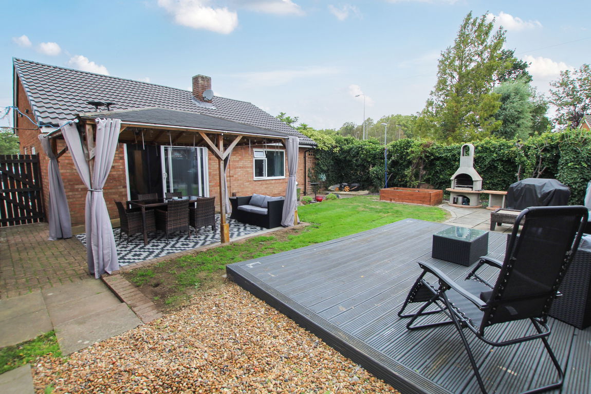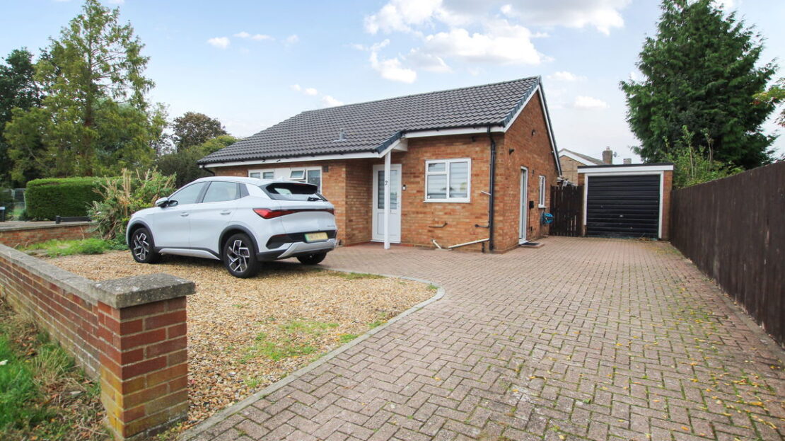 A rarely available two double bedroom detached bungalow boasting modern luxuries, generous driveway, detached garage and no upward chain.