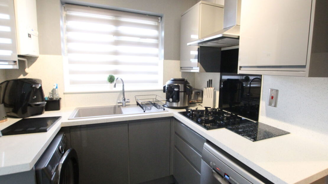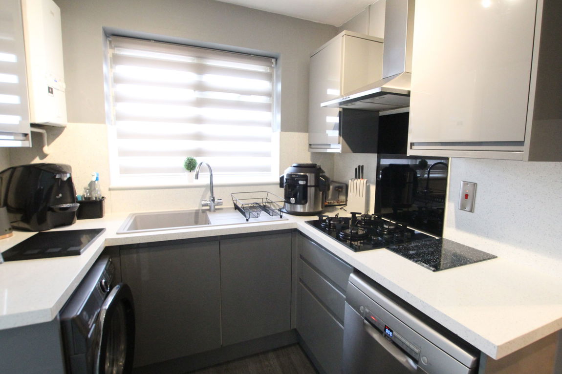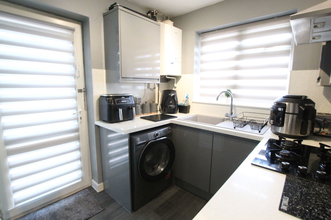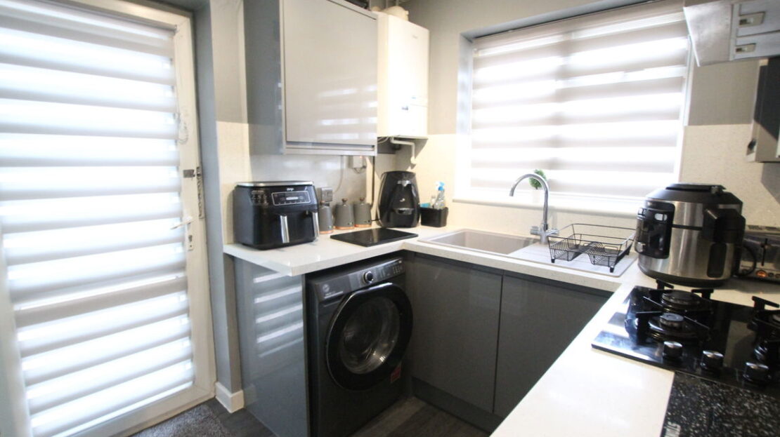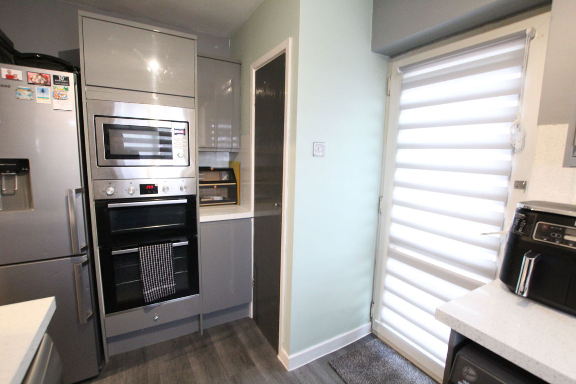 uPVC double glazed window to front elevation and uPVC double glazed door to side elevation, extensive modern fitted kitchen comprising of sink unit with mixer tap over, work surfaces, range of base units incorporating built-in stainless steel gas hob and double electric oven, built in microwave, plumbing for dish washer, plumbing for washing machine, space for fridge freezer, tiling to splash areas, matching range of wall mounted units incorporating stainless steel extractor hood, wall mounted boiler.