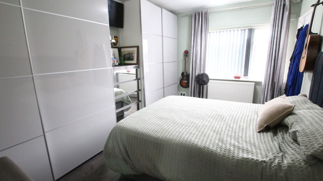 uPVC double glazed window to rear elevation, double panel radiator, built-in cupboard.